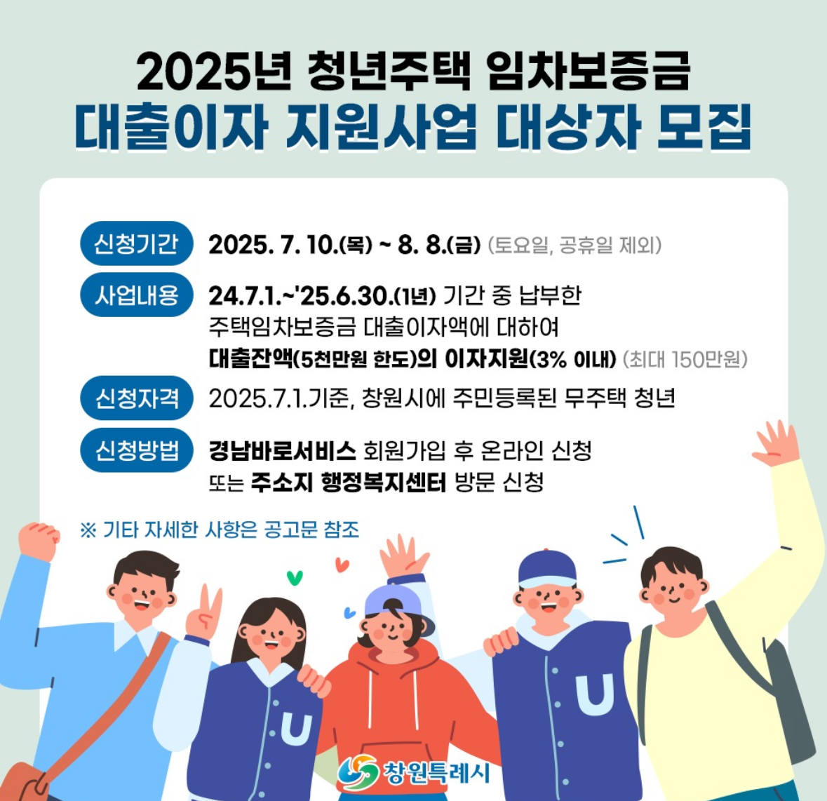 창원시에서 시행하는 2025년 청년주택 임차보증금 대출이자 지원 사업에 대해 정리해드리겠습니다.